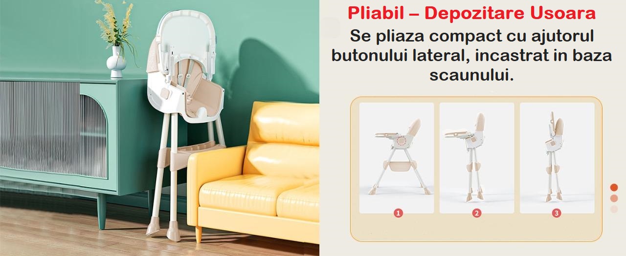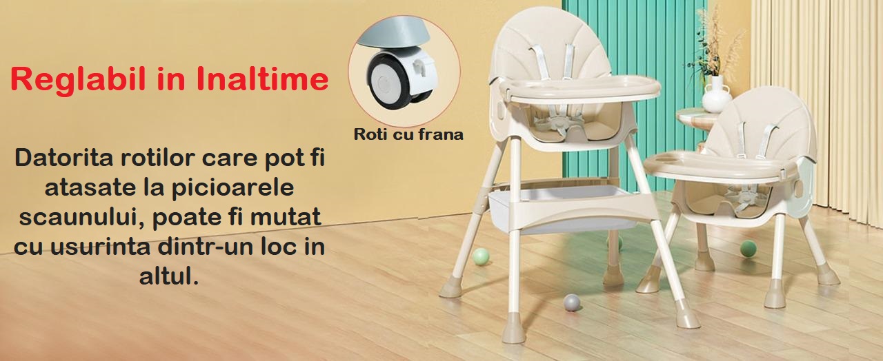 Scaun de Masa Pliabil 4in1 KinderVibe™ 6 Luni +, Multifunctional si Stabil, Tavita si Husa Detasabile si Lavabile, Roti, Centura de Siguranta 5 Puncte, Ajustabil pe Inaltime, Balansoar, Cos de Depozitare, Verde